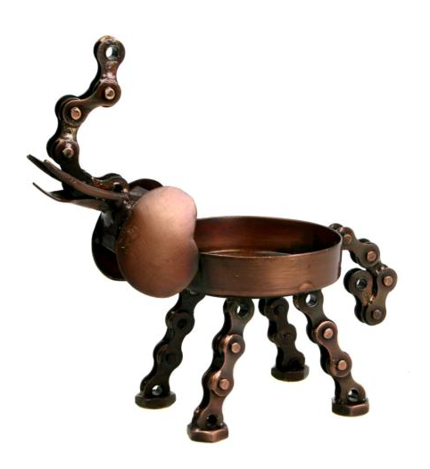 Recycled metal and bike chain elephant t lite holder.