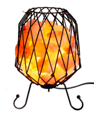 Natural pink Himalayan salt chunks contained within a black iron brazier. These light up with a soft orange glow giving a cozy feel and having all the health beeifits that come from purifying salt.