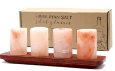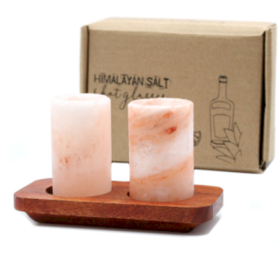 These shot glasses are made of pink Himalayan salt and come on a nice wooden stand. Either a set of 2 or a set of 4, these will add an extra dimension to your drinks, as well as being a talking point. Can be reused.