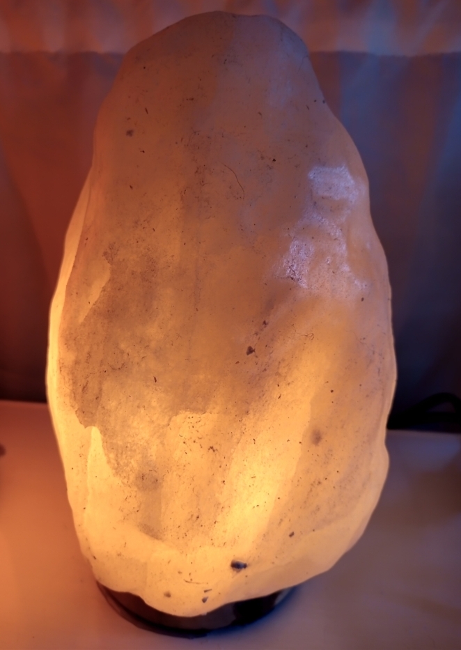White salt is a little bit rarer than the more common pink salt, and gives a brighter white glow. Natural in shape, each one is unique and will go with any decor.
